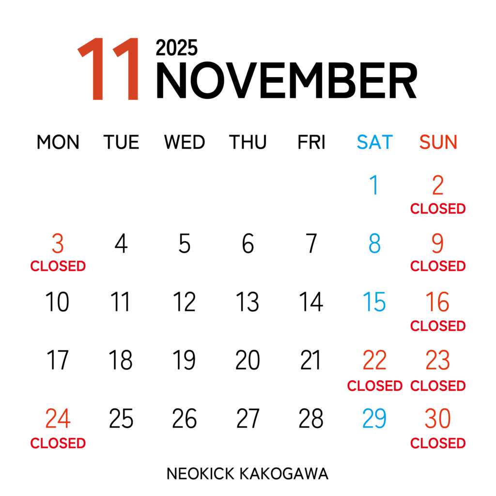 2(日)お休み3(月・祝)お休み9(日)お休み16(日)お休み22(土)お休み23(日)お休み24(月・祝)お休み30(日)お休み
